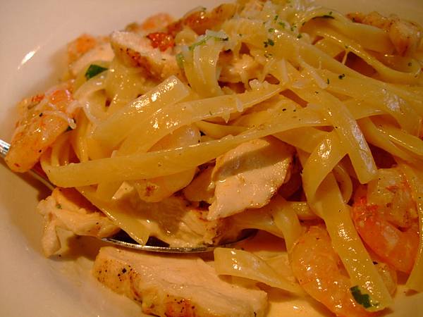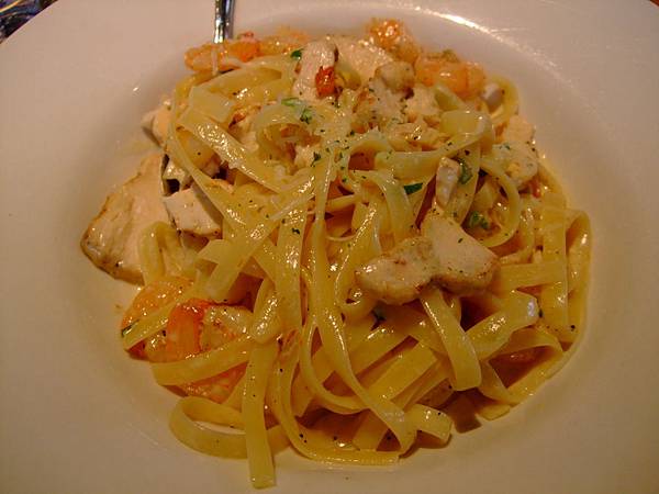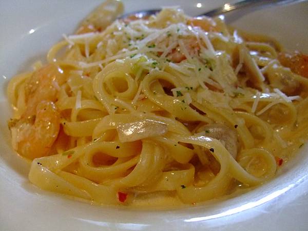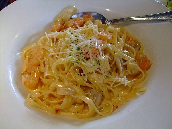 我們去是星期三,點了鮮蝦雞肉奶油寬麵,這天除了雞肉之外還有菇可以選