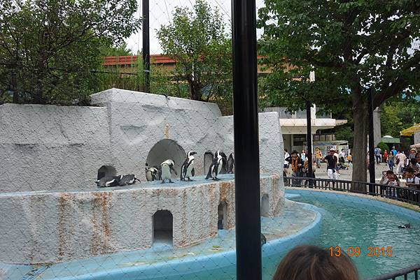 企鵝用網子圍起來,不像台灣隔在玻璃後覺得好遙遠