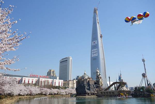 搭配好天氣、湖水、樂天世界城堡、樂天世界塔