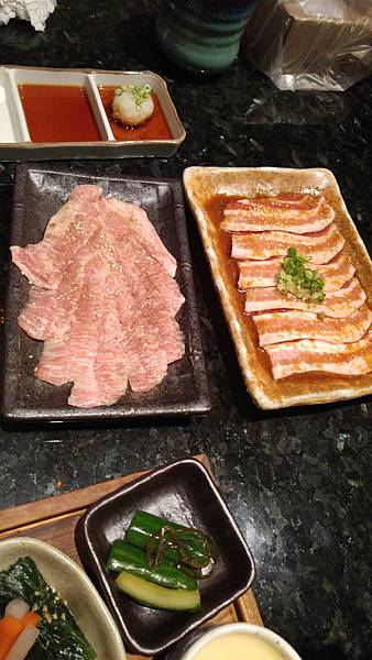 單點的鹽味霜降豬肉220元、烤肉醬上等豬五花200元