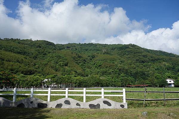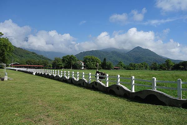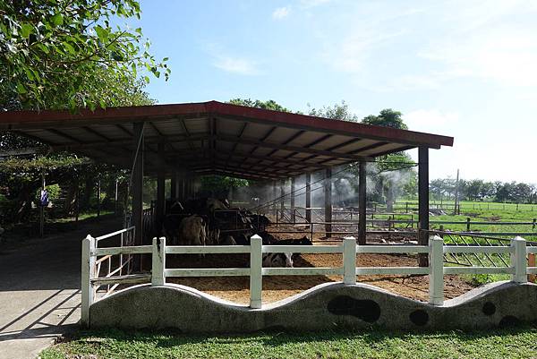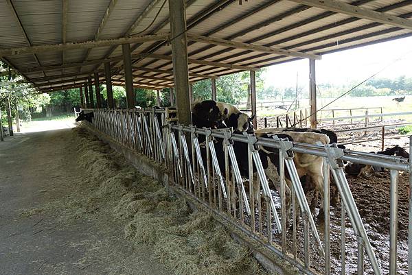 一進去看到很大片的牧場,牛隻因為太熱,都躲在後面的棚子乘涼