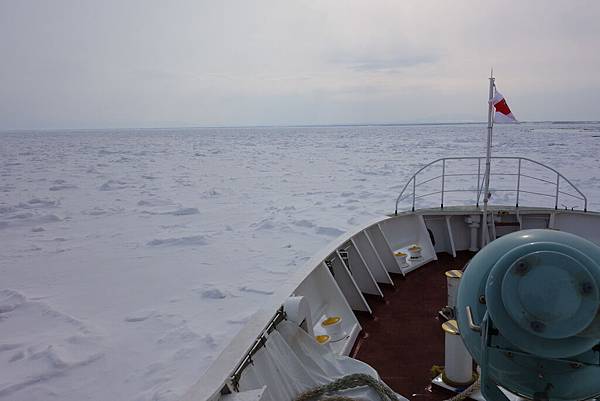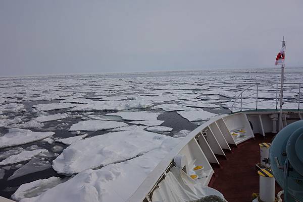 因為船要開到有流冰的地方,行駛一段時間會先看到一些流冰(這裡是船頭)