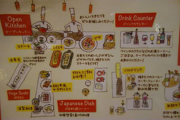 餐廳很寬敞、菜色種類非常多、令人眼花撩亂