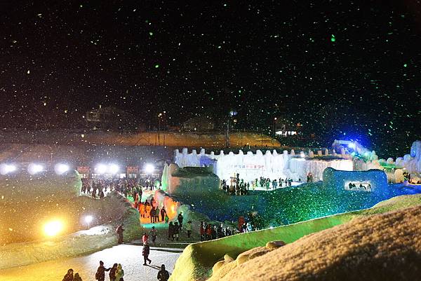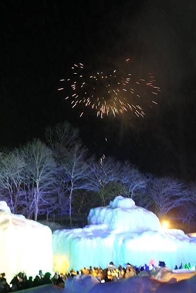 比較起來,阿寒湖的煙火厲害多了,但層雲峽的冰雕、建築比較有看頭