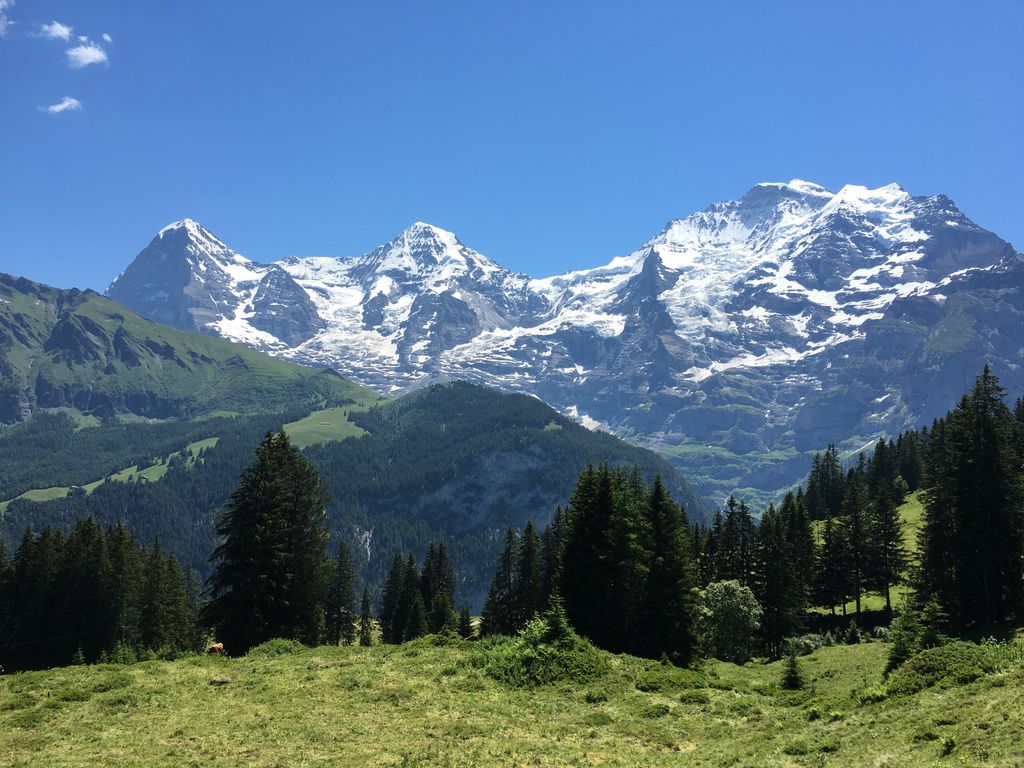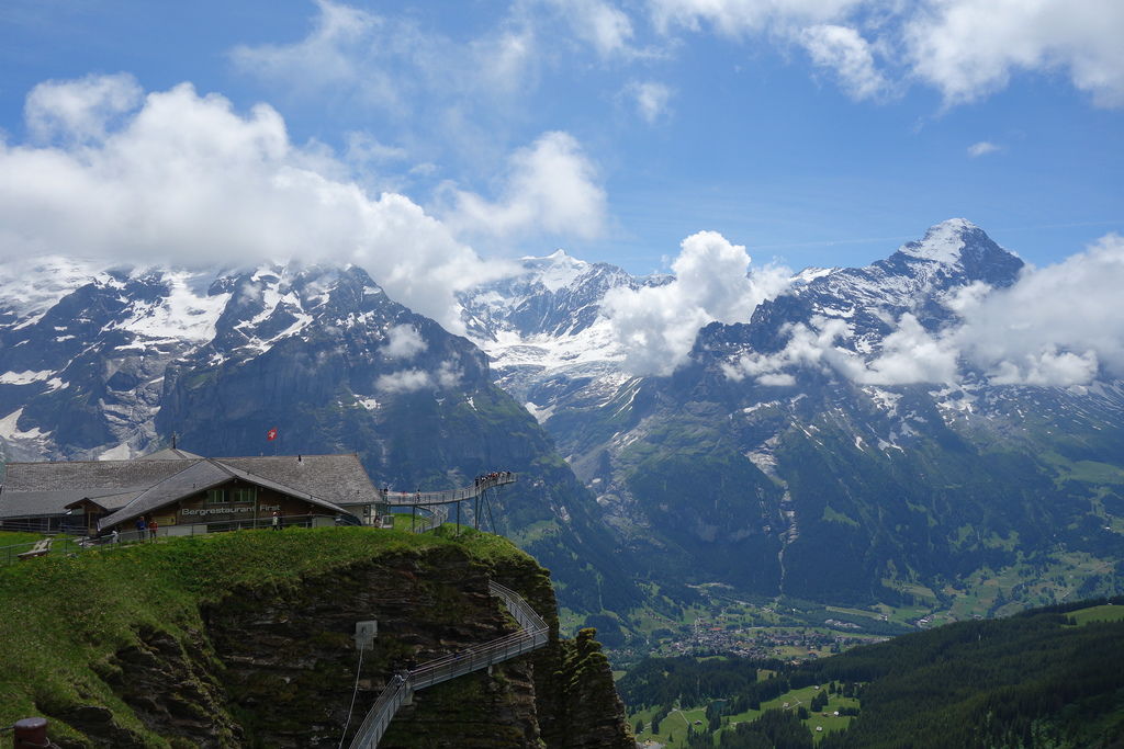 D6 中午抵達格林德瓦Grindelwald,旅館讓我們提前入住,放好行李後去搭First纜車,一路上是晴天,風景很美~~