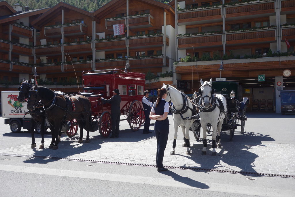 下午前往策馬特,車站旁有馬車停車場啊!(是高級飯店的接駁車)