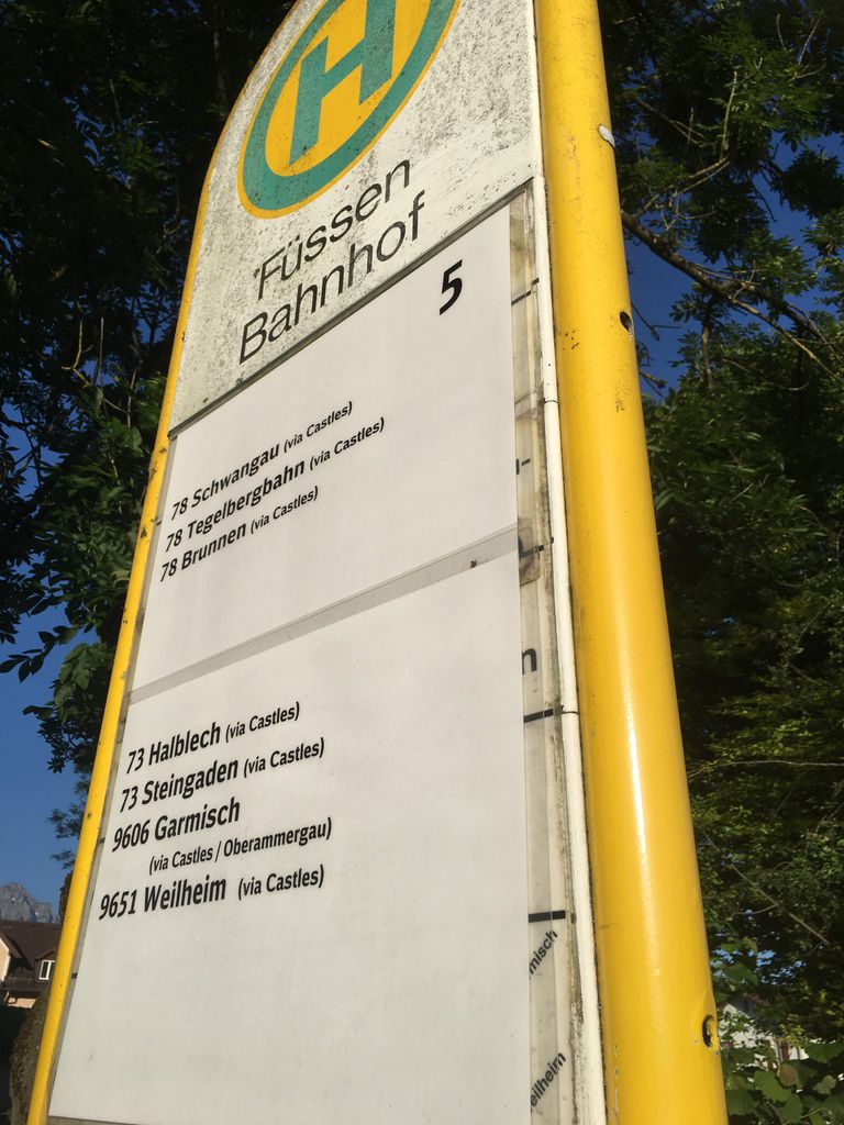 公車站名 Füssen Bahnhof 到 Hohenschwangau Neuschwanstein Castles