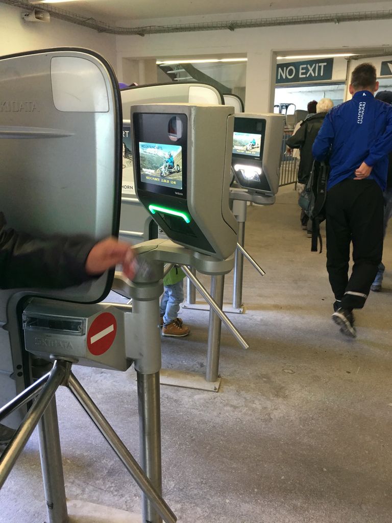 一開始不太會用,要摸索一下感應位置,亮綠燈表示感應成功,可以通過
