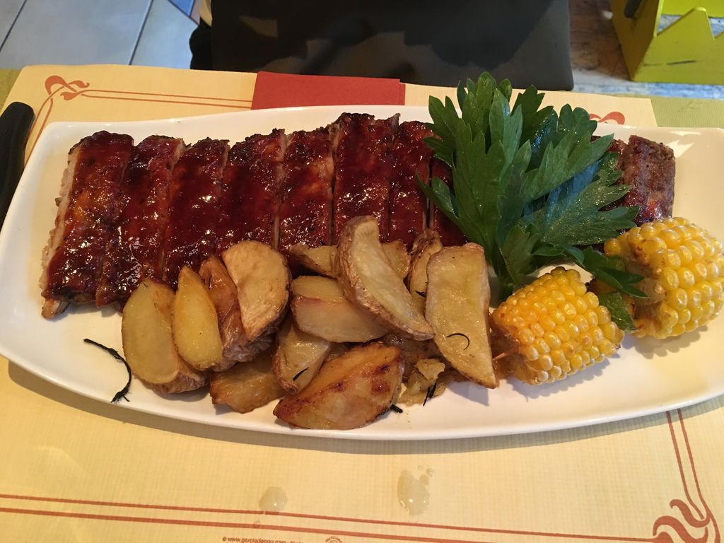 no.1的烤豬肋排上桌啦,真的好大啊! 豬肋排有好吃耶,馬鈴薯也不錯,玉米就乾乾的