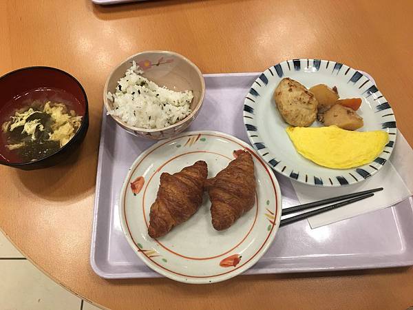東橫inn金澤香林坊的早餐種類比一般的多啊! 有可頌! 開心的吃~~