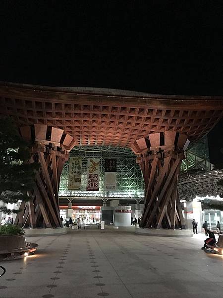只照到晚上的金澤車站鼓門 (結果沒吃金箔冰淇淋)