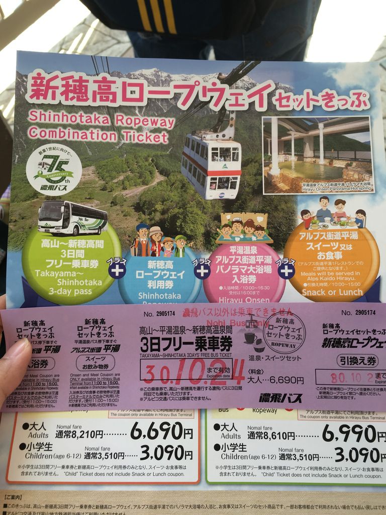 原本要買"奥飛騨まるごと・バリューきっぷ "的套票,但是到高山的巴士站說沒賣這個票,要去JTB買,因為趕時間就算了