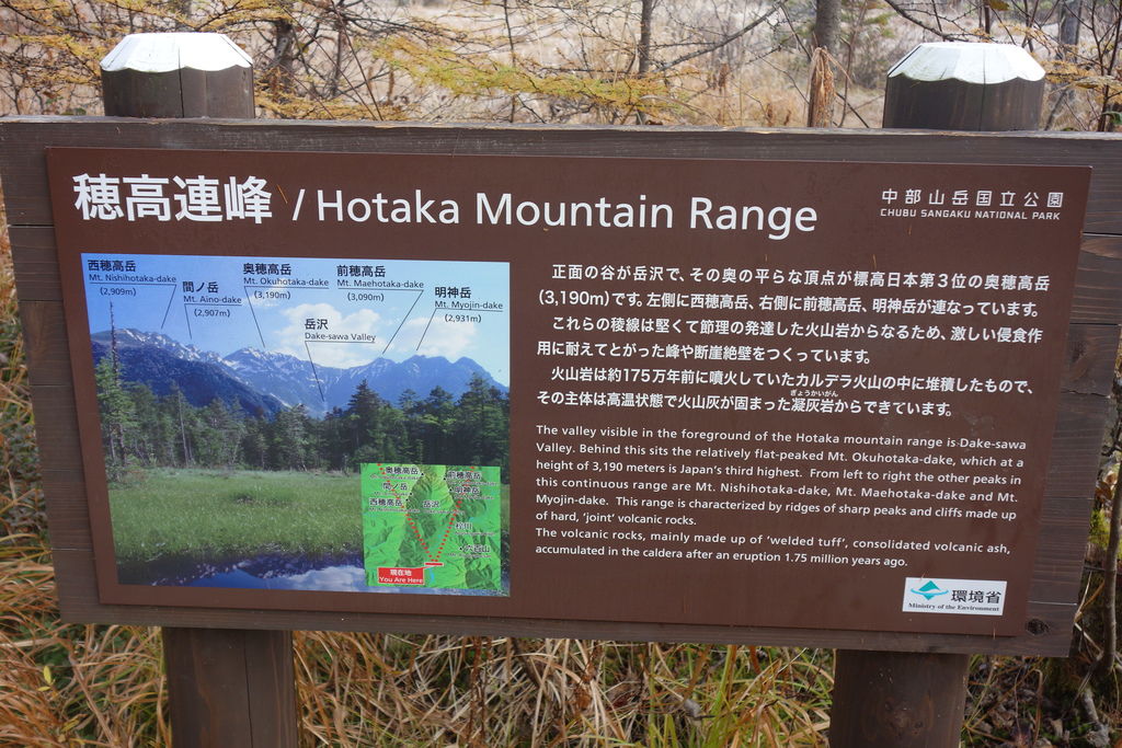 有告示牌對照各山岳的位置,綠色的草地已經光禿禿了
