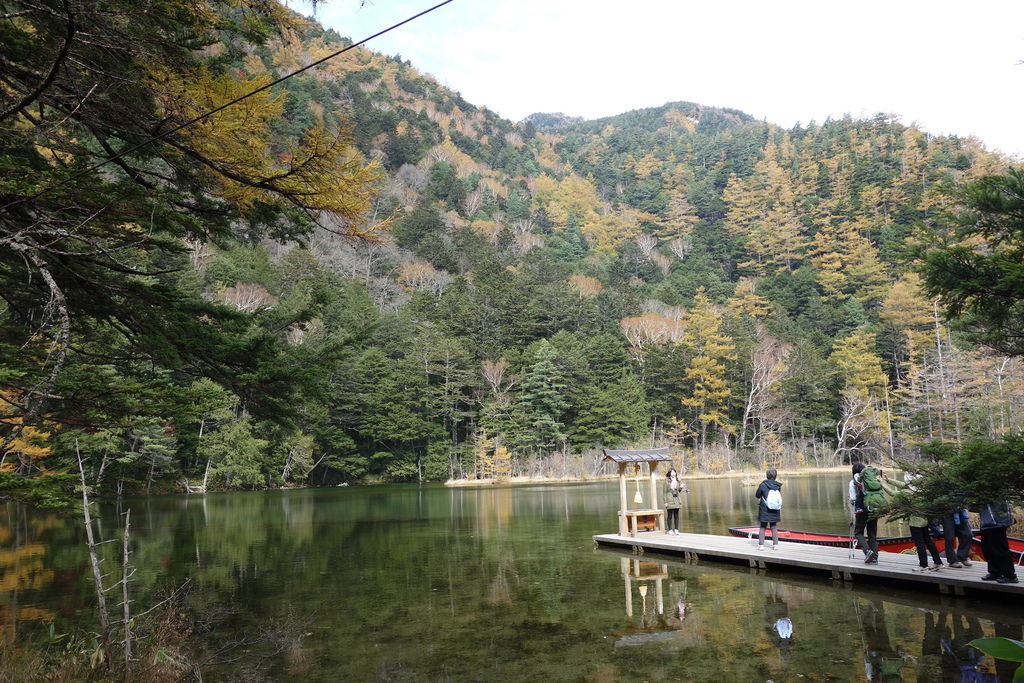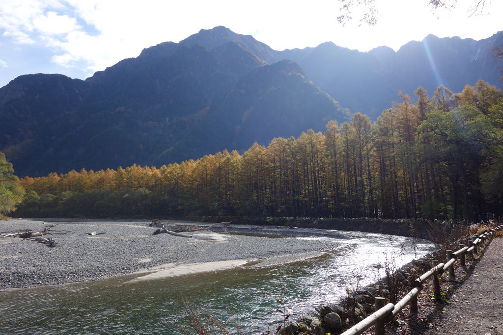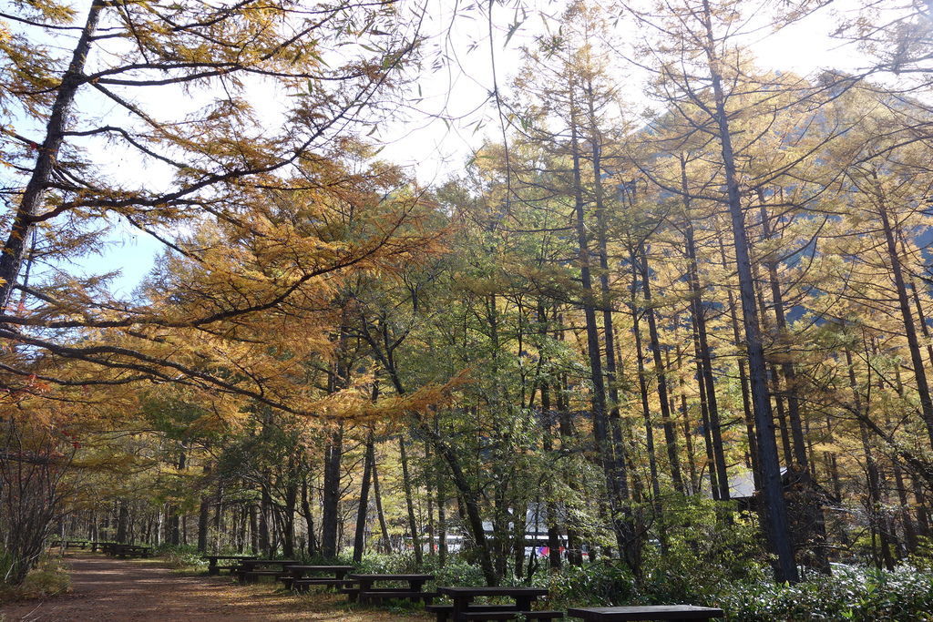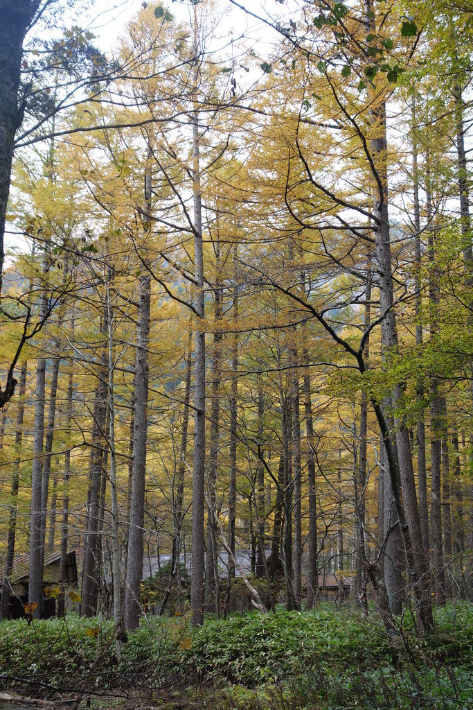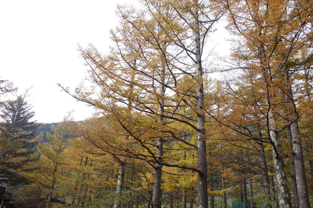 秋天的黃葉,上高地大部分是黃色的,紅色只有偶爾幾株