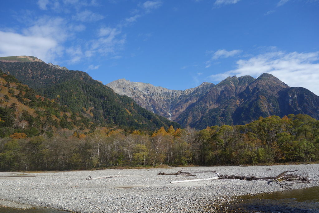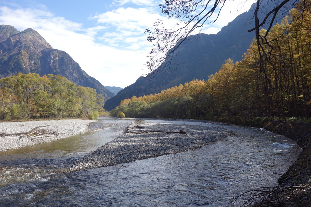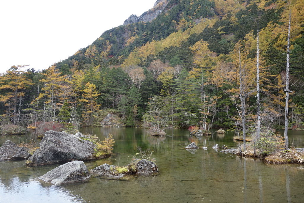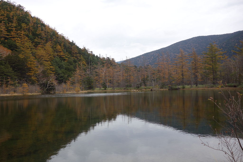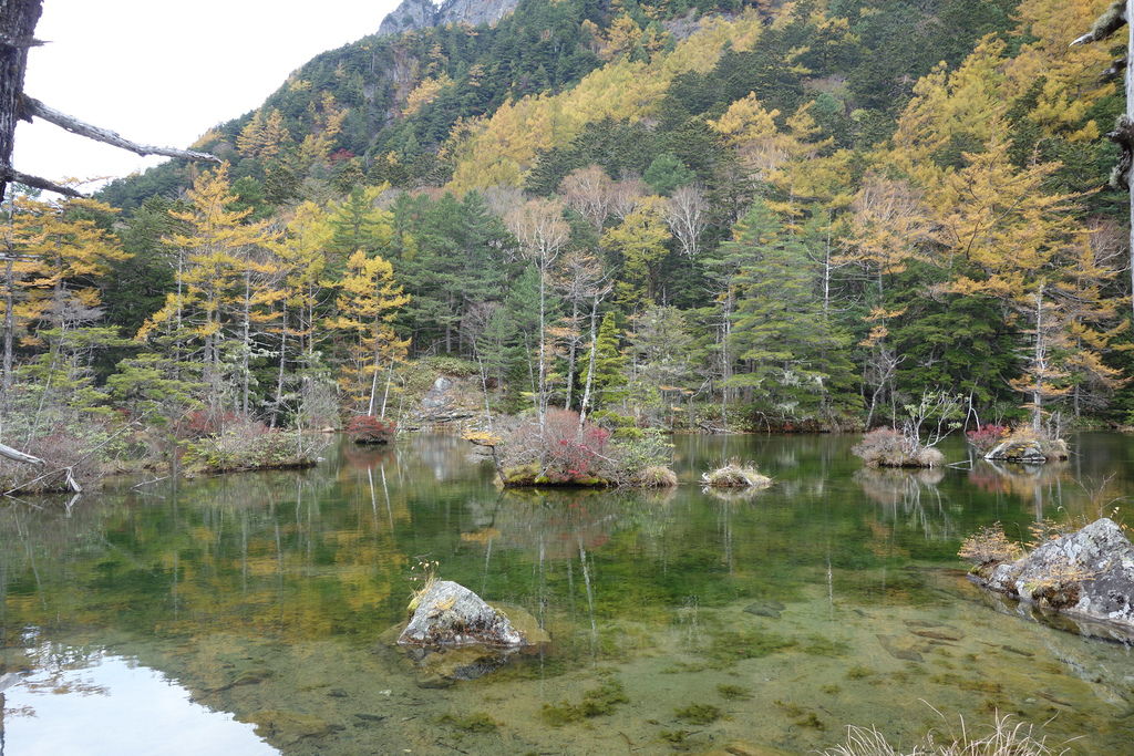 秋天的黃葉,上高地大部分是黃色的,紅色只有偶爾幾株