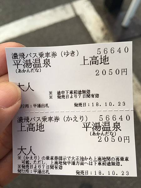平湯溫泉巴士站旁有機台可買票 (票上面寫7天內有效)