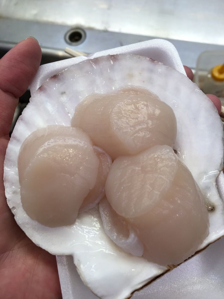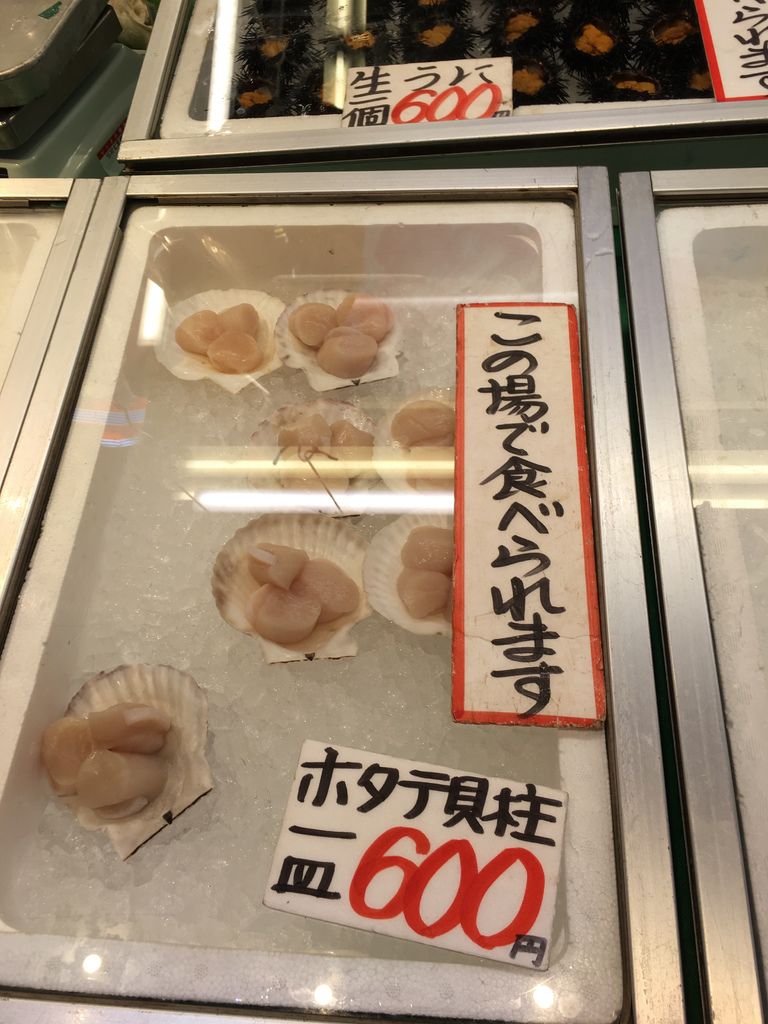 新鮮干貝一盤3顆 600日圓,鮮甜好吃、口感紮實,跟冷凍的吃起來真的不一樣啊!!!