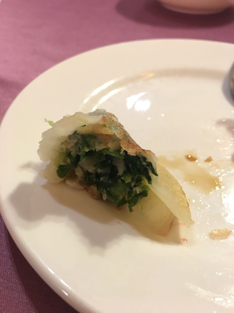 鳳城韭菜盒,滿滿的韭菜,像煎餃,普普,而且油膩