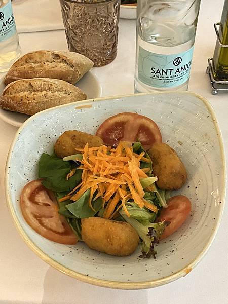 前菜 肉丸沙拉,西班牙的肉丸內餡都是泥狀的,還可以