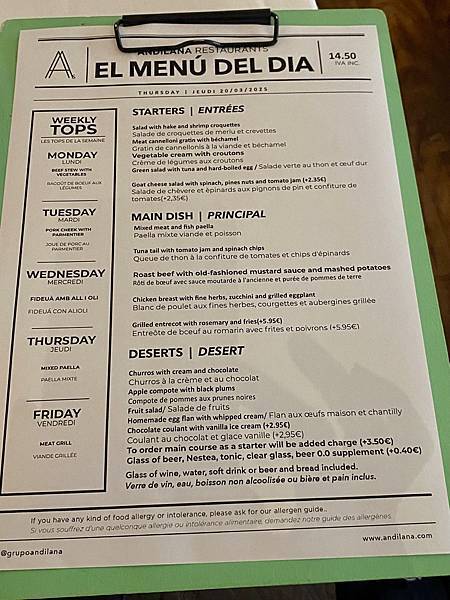 西班牙餐廳除了Tapas有名之外,還推薦平日午間套餐