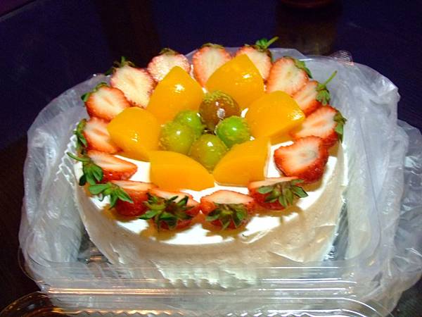 我們這次13個人,是8吋的蛋糕啊!上面還有草莓和水蜜桃,可外帶。